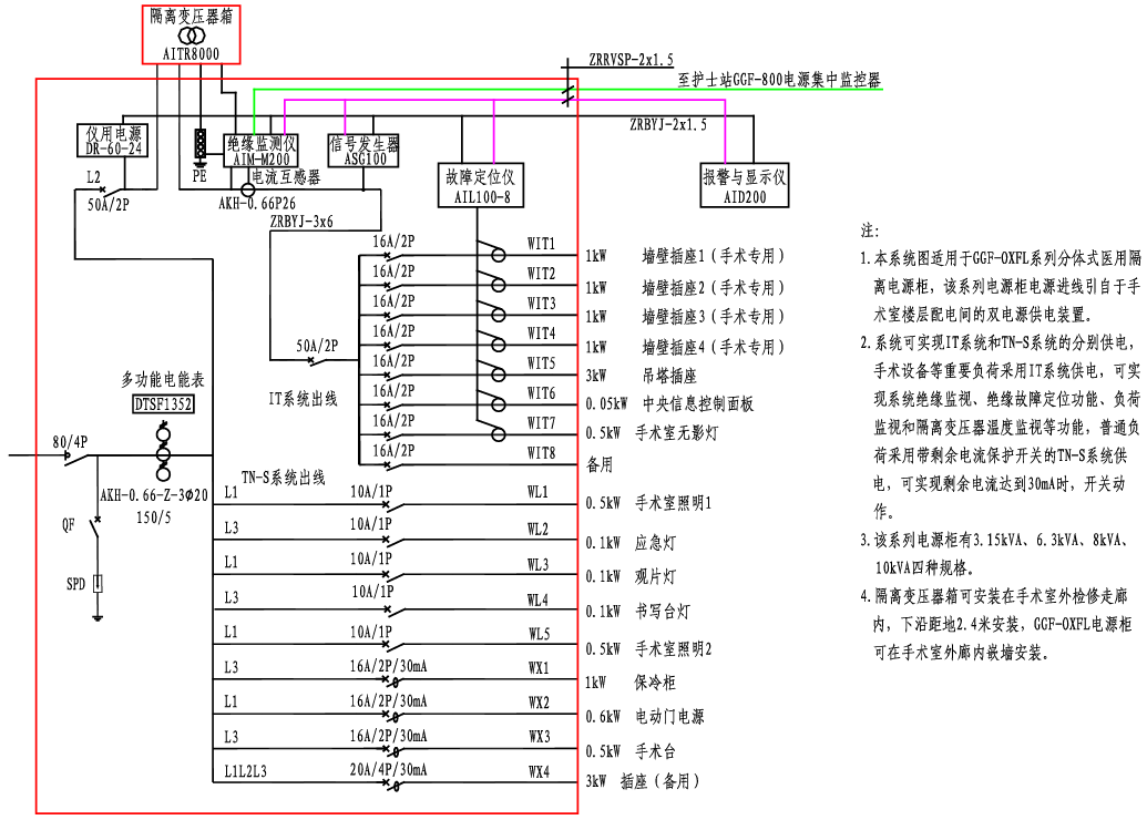 GGF-OXFL医用隔离电源柜系统接线图