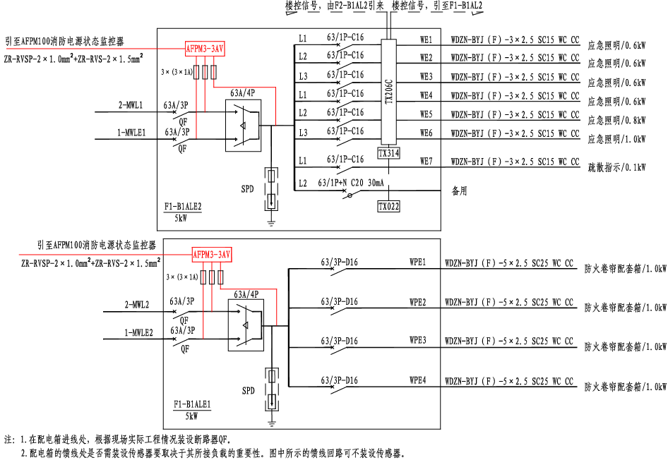 楼层应急照明、防火卷帘电源监控系统图