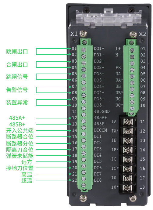通讯协议:RS485接口 Modbus/RTU协议或103规约可设置
