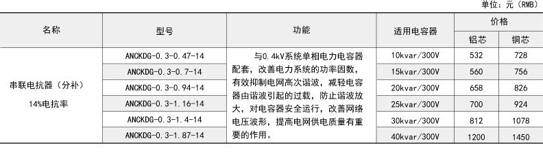 技术要求:适用电容器5kVAR;7%电抗率;铜芯