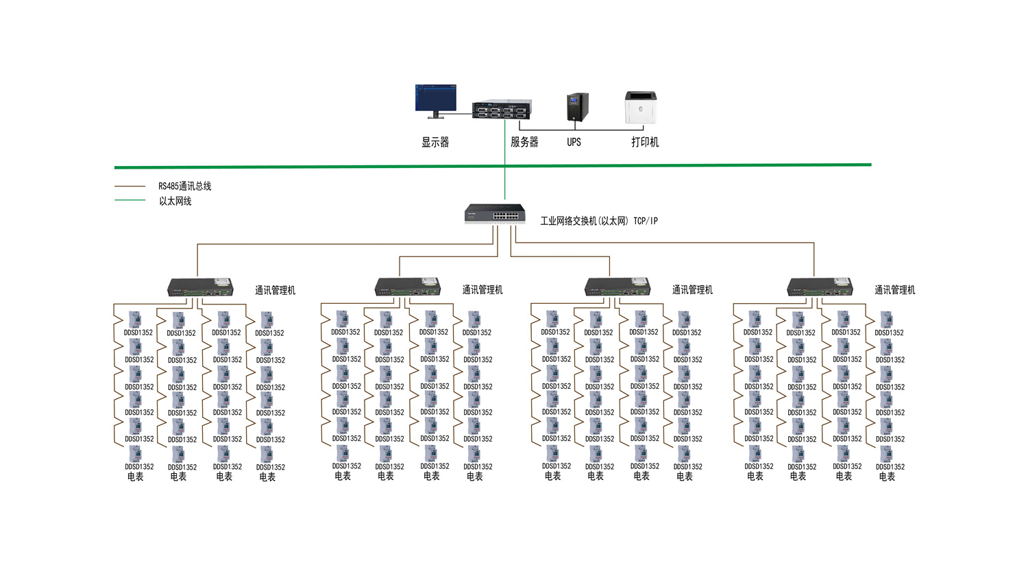 本项目共有464只单相电能表DDSD1352,针对本院病房、门诊楼,为实现用电的智能化管理,通过安科瑞终端电能计量表计来实现计量每个病房的用电量。