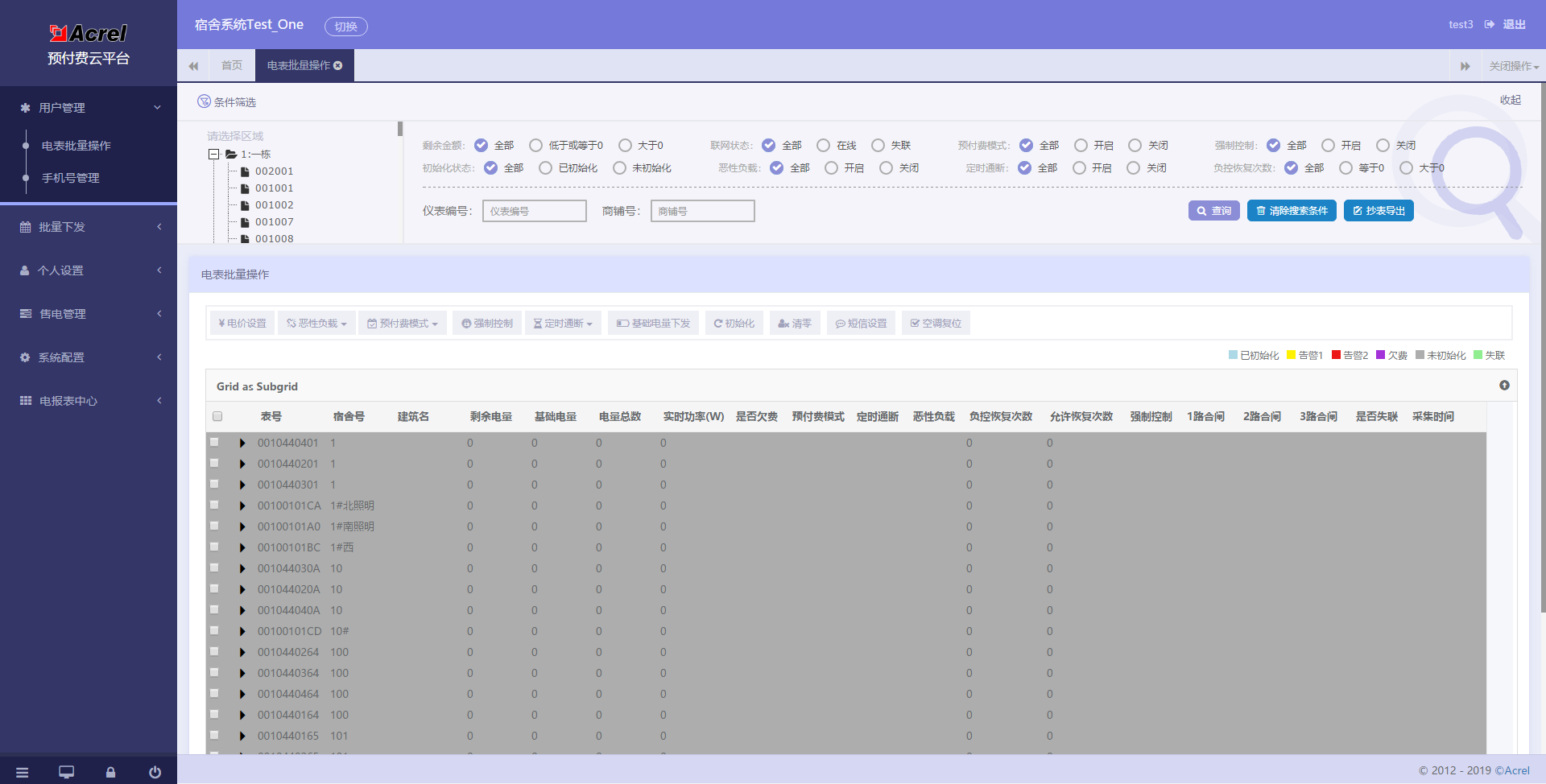 临沂科技职业技术学院项目现场为四栋宿舍楼,对四栋宿舍楼各楼层配电箱进行预付费电能计量。