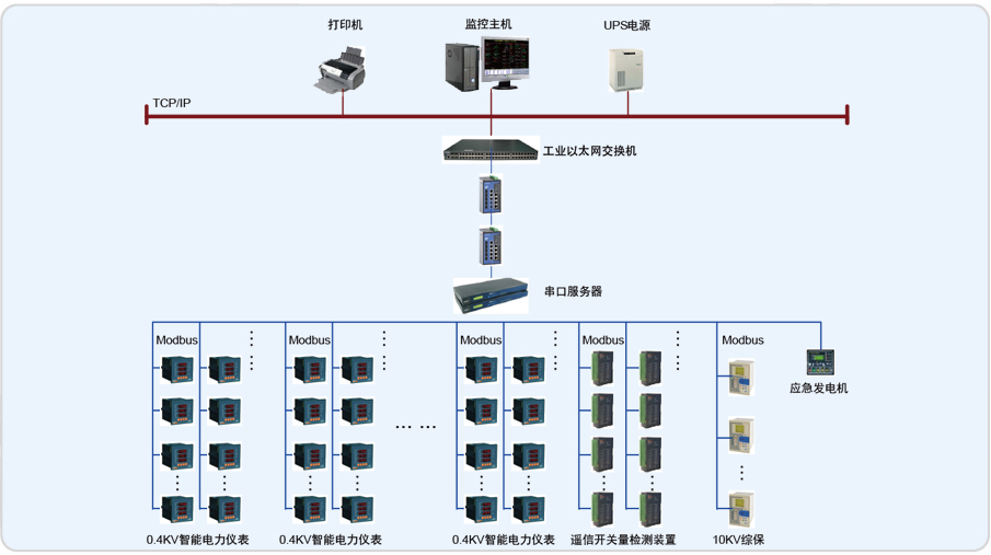 1、数据采集与处理:数据采集主要由底层多功能网络仪表采集完成,实现远程数据的本地实时显示。