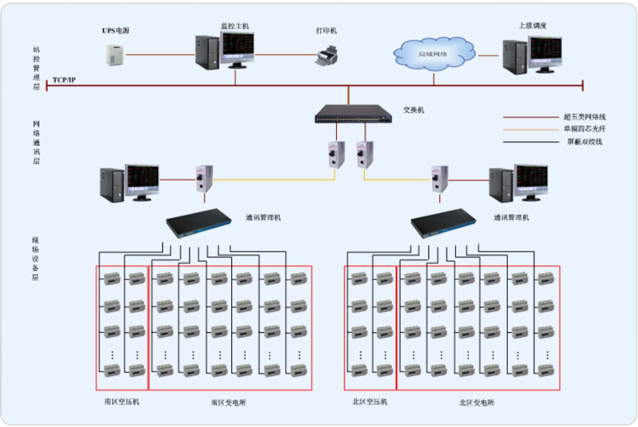 本项目为耐世特汽车针对南北区变电所和空压机回路设置的配电所电力监控系统。根据配电系统管理的要求,ACREL-2000电力监控系统对耐世特南北区两个厂房的2个变电所内的低压配进出线和车间里5台大型空压机的配电回路进行监控,以保证用电的安全和可靠。通过组建系统网络,实时监测变电所内各个回路的电流、电压、功率、开关状态等电参量,由此达到变电所少人值守或无人值守的智能化管理。