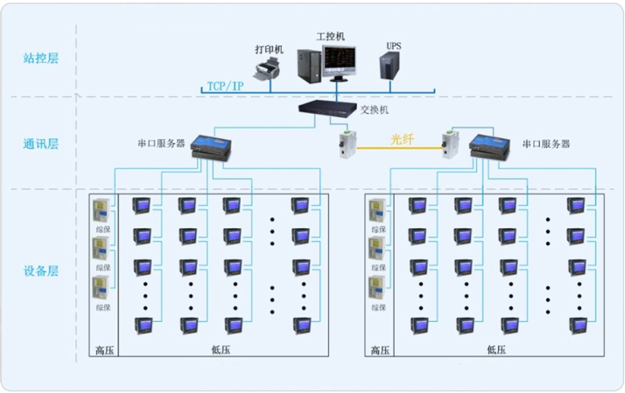 本系统主要监测新建3.6万KL/年精品啤酒项目联合车间,该车间共有2组变压器。3台AM5微机保护装置,5只ACR330ELH、41只ACR120EL、4只PZ72L-AI3多功能电力仪表接入电能管理系统。通讯总线直接接入变电所内串口服务器,从而仪表与监控主机的数据连通。8868体育为其配置一套Acrel-3000电能管理系统,实时监测变电所内各个回路的电流、电压、功率、开关状态等电参量,由此达到变电所少人值守或无人值守的智能化管理。