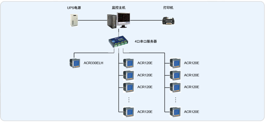 厂区配电中心为本项目提供一套高、低压后台监控系统,将对厂区内电气室中改造安装的19块智能电测仪表进行集中监视。具体监控数据为:用电量计量、实时测量相电压、线电压、有功功率、无功功率、视在功率、功率因数、频率等数据,能打印月度用电报表,并有历史曲线的查询(时间不小于30天),重要回路需要对其谐波进行测量。各参数及数据通过RS485总线,通过网络送至配电中心的电工值班室(后台监控中心)。