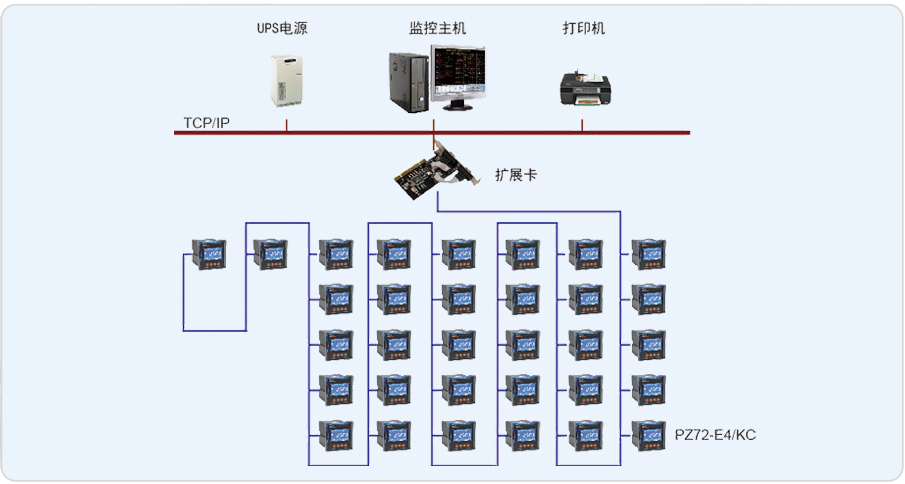 8868体育于2012年11月承接了常熟涤纶有限公司配电改造监控系统项目。采用Acrel-3000电能管理系统,完成了对四个厂区的电能计量功能,四个厂区共计一个高压出线回路,32个低压出线回路,均安装PZ72-E4/KC可编程电测表,所有仪表均通过RS485总线连接至扩展卡,再通过扩展卡将数据上传至到整个电能管理系统中。