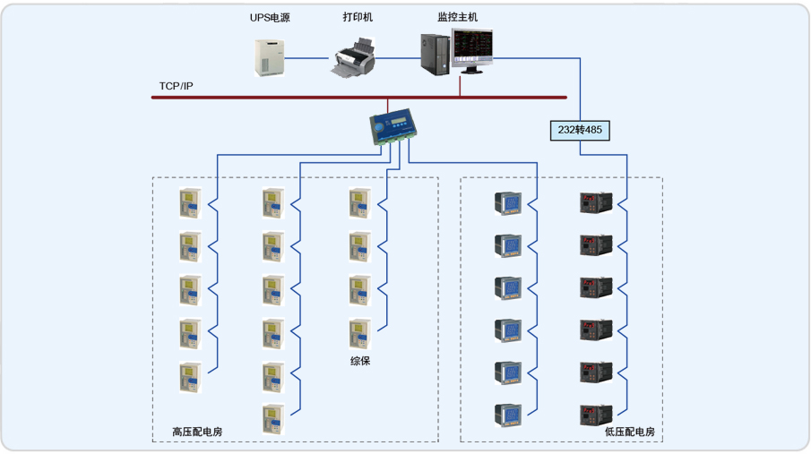 2、电能管理功能:实现电能的分级管理理念,即总表读数应与供电局收费表读数一致,各分表用电净值和与总表一致等,在界面上直观体现;完成对各回路的电能集抄功能,并自动生成符合客户管理需求的收费报表,所有报表和图表支持查询打印功能;