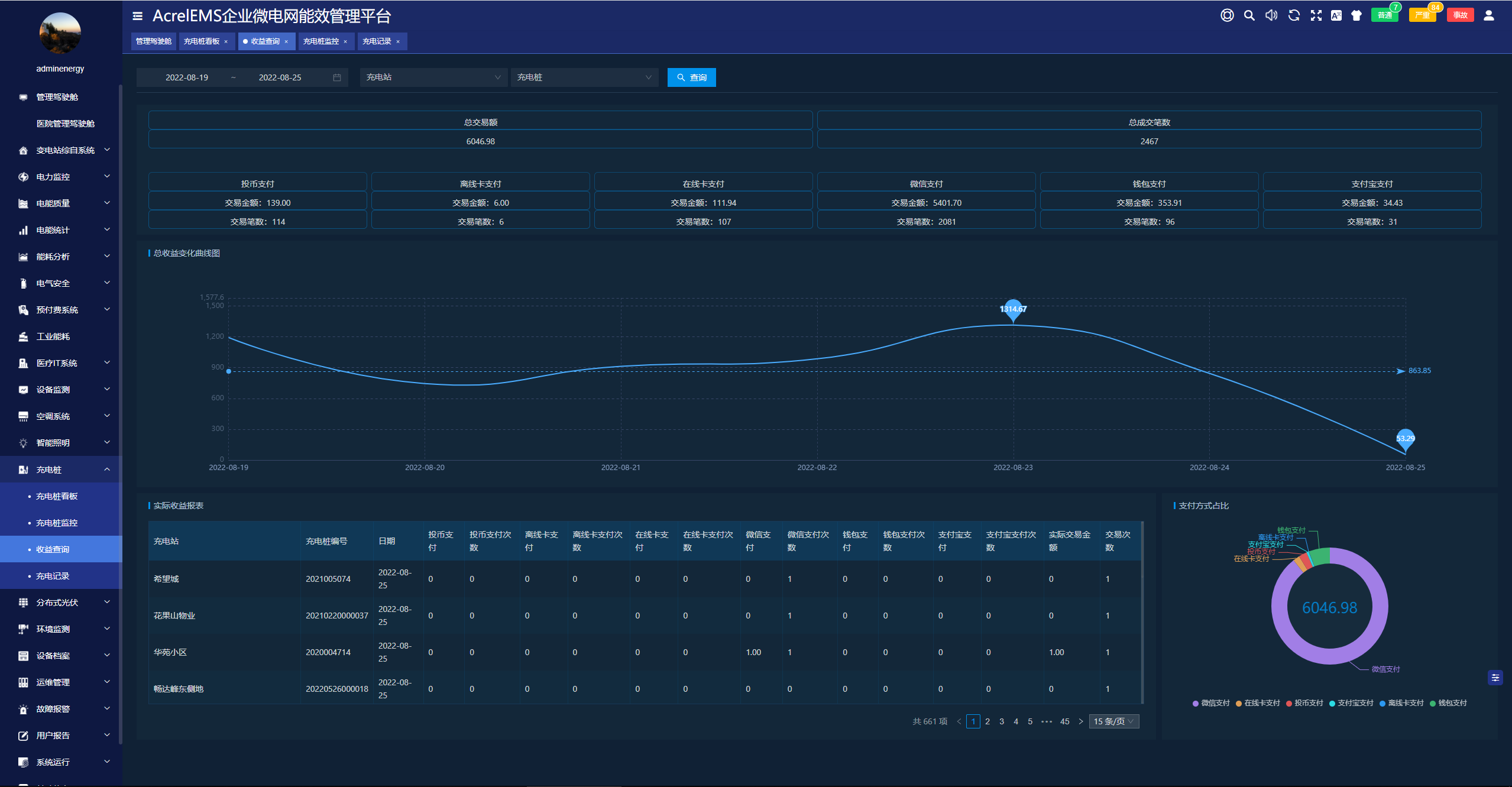 平台具备定时抄表汇总统计功能,用户可以自由查询平台正常运行以来任意时间段内各配电节点的用电情况。