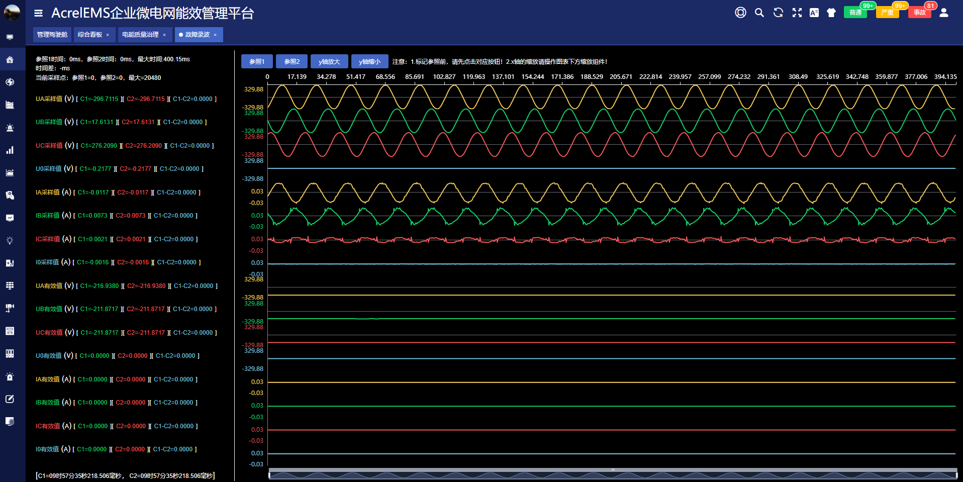 平台可实时监测配电系统的谐波畸变、电压波动、闪变和容忍度指标分析配电系统的电能质量。