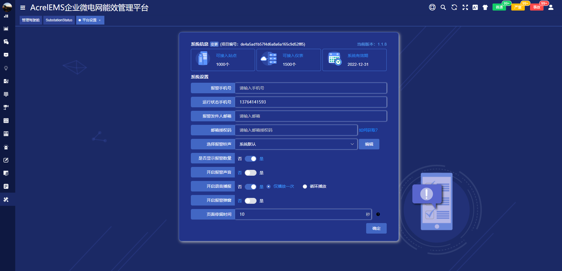 平台接收到报警信息后,可通过短信或者APP推送报警信息,相关报警阈值可根据要求灵活设置,并对报警设置不同级别。