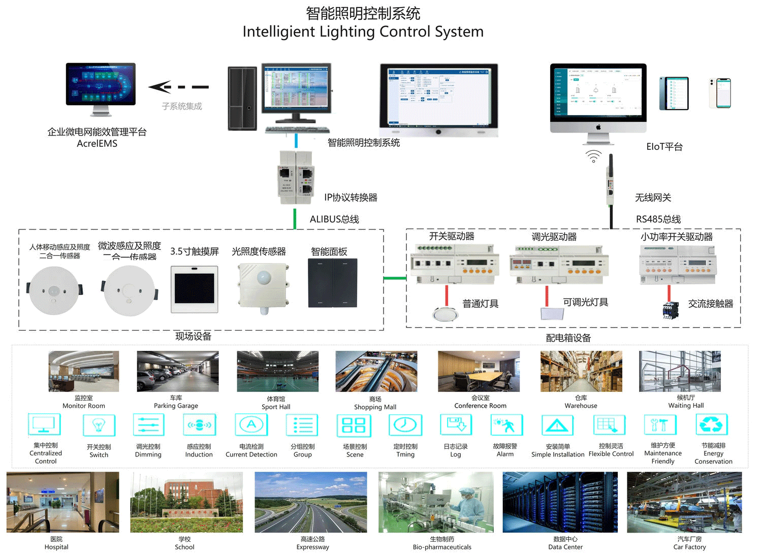 3)可以对单个照明回路实现开关控制;每个模块、楼层都有相应的模块控制开关和楼层控制开关,也可以一个模块或者整个楼层实现开关控制。