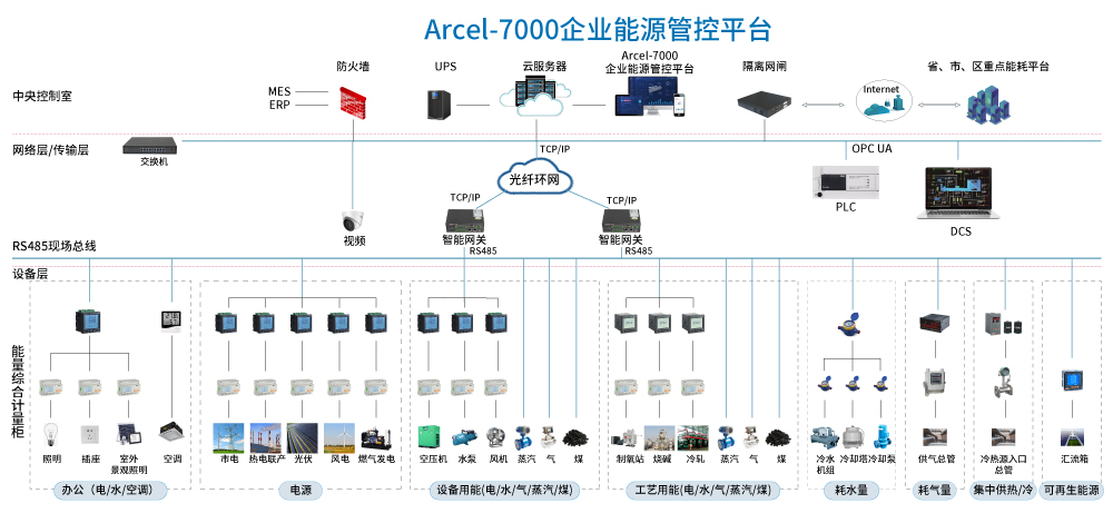 Acrel-7000企业能源管控系统采用自动化、信息化技术和集中管理模式,对企业的生产、输配和消耗环节实行的动态监控和数据化管理,监测企业电、水、燃气、蒸汽及压缩空气等各类能源的消耗情况,通过数据分析、挖掘,帮助企业针对各种能源需求及实际用能情况、产品能源单耗、工序能耗、重点设备用能等进行能耗统计、同环比分析、能源成本分析、用能预测、碳排分析,为企业加强能源管理,提高能源利用效率、挖掘节能潜力、为节能评估、能源审计提供基础数据。