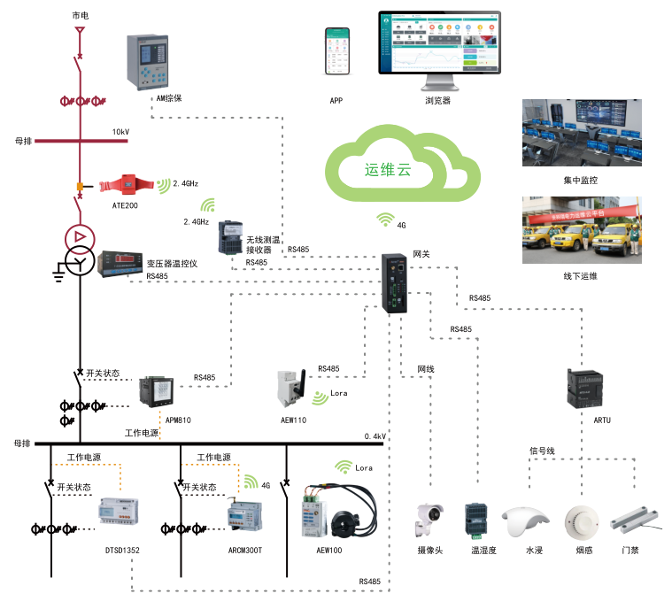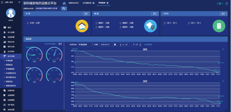 实时监测变电所的运行环境,包括环境温湿度、水浸、门磁、烟感、线缆温度等,并可实现视频监视和录像回放;